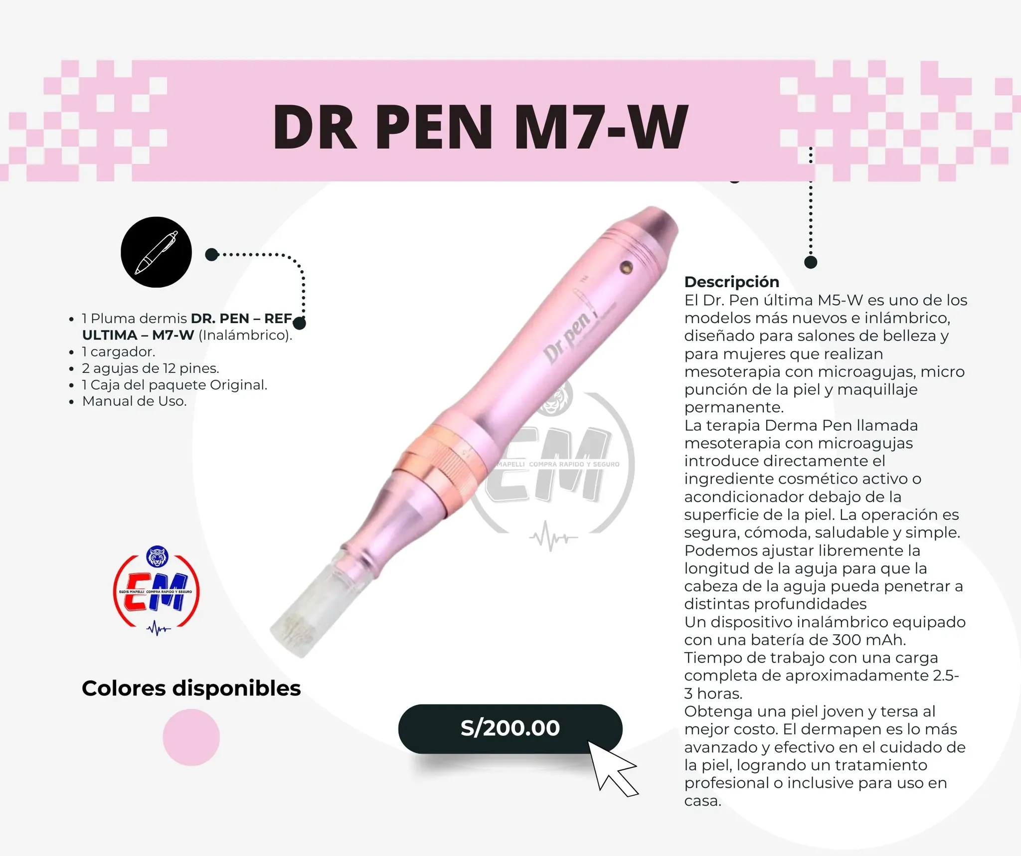 El Dr. Pen última M5-W es uno de los modelos más nuevos e inlámbrico, diseñado para salones de belleza y para mujeres que realizan mesoterapia con microagujas, micro punción de la piel y maquillaje permanente.