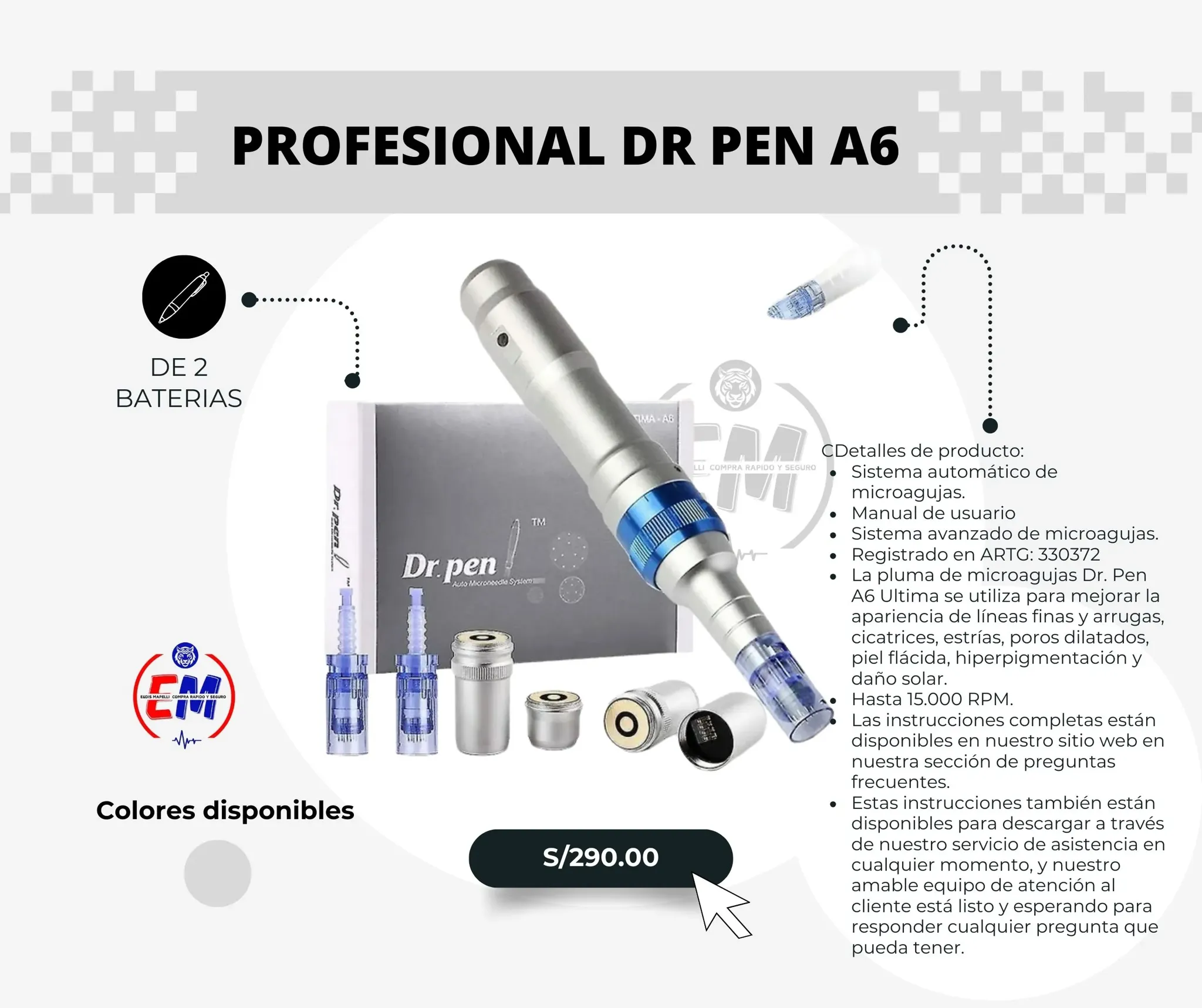La pluma de microagujas Dr. Pen A6 Ultima se utiliza para mejorar la apariencia de líneas finas y arrugas, cicatrices, estrías, poros dilatados, piel flácida, hiperp...